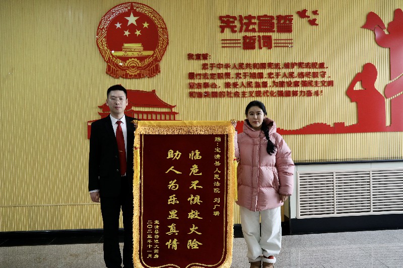 “可算找到你了……”12月6日,宝清县标准大药房负责人姜姗姗将一面写有“临危不惧救火险,助人为乐显真情”的锦旗送到宝清县人民法院,表达对法院干警刘广瑞不顾自身安危,奋力救火的感激之情。