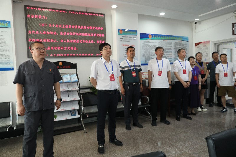 张福鼎一行首先来到诉讼服务中心,实地了解各窗口职能、便民服务终端的使用操作流程,对网上立案、跨域立案等一站式、一体化服务及便民设施有了进一步的了解。参观人员还听取了“龙法和”平台及县法院创新开发的“执行一证通”的详细介绍。