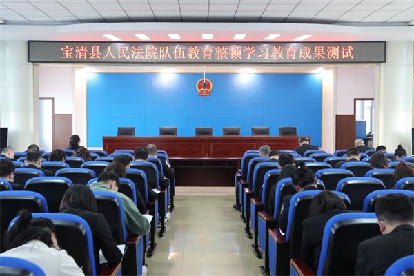 按照宝清县人民法院队伍教育整顿学习教育环节计划安排,3月18日下午,宝清县人民法院组织了政法队伍教育整顿应知应会知识测试,对干警近期学习成效进行摸底,全院在编在岗干警参加测试。测试形式为闭卷考试,试题内容包括队伍教育整顿各环节任务和重点知识。测试中,全院干警奋笔疾书,认真作答。